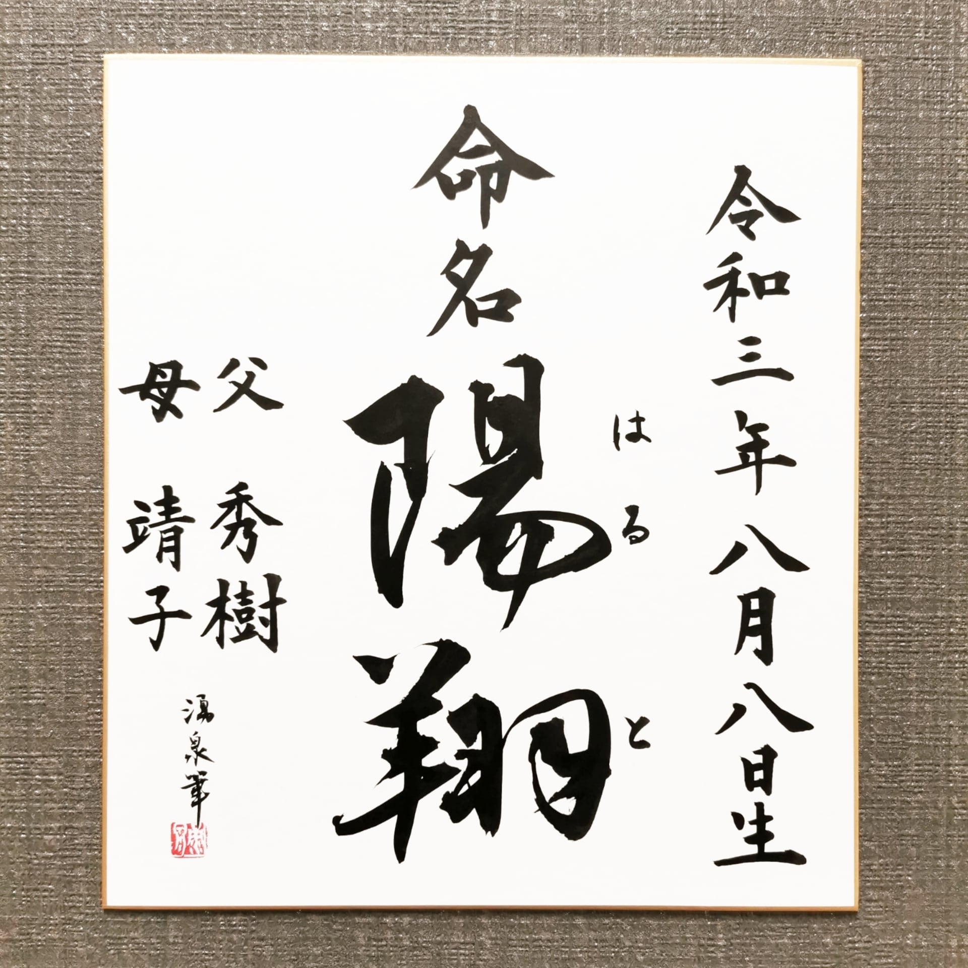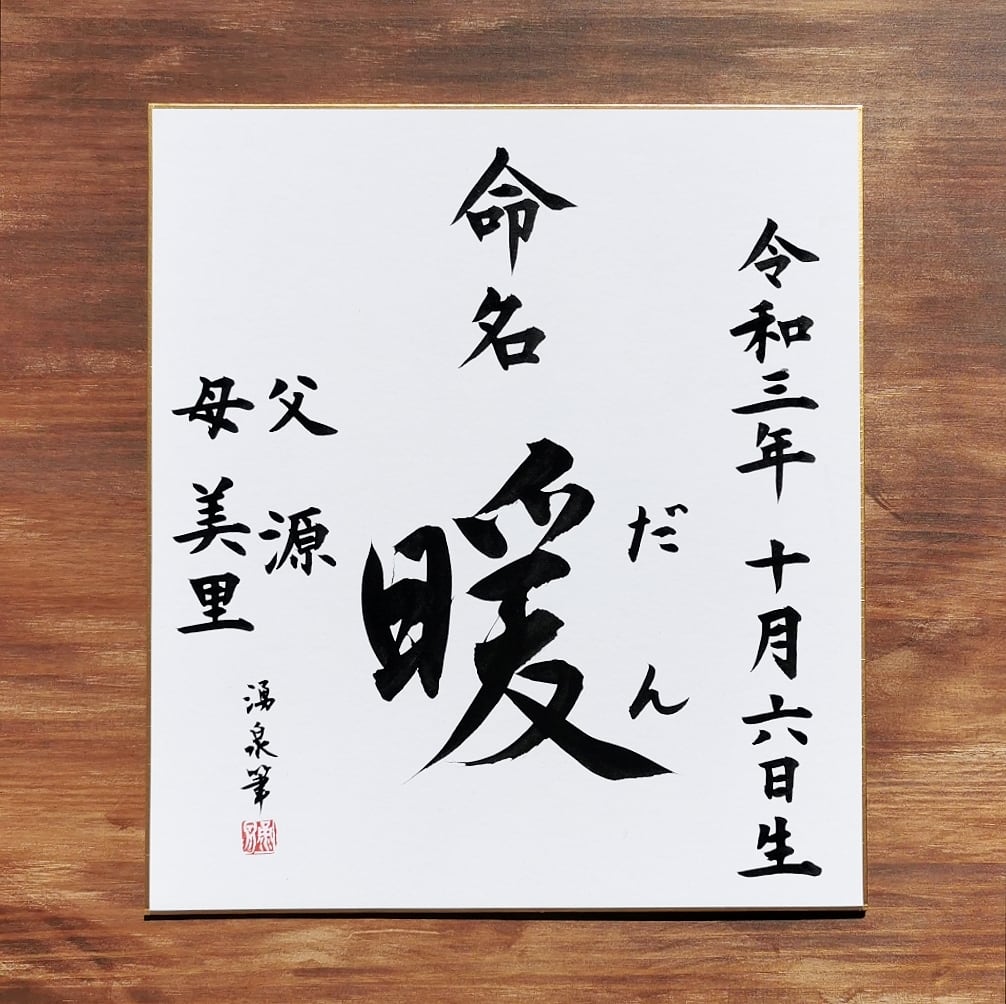 お名前、よみ、生年月日、ご両親のお名前を揮毫します。