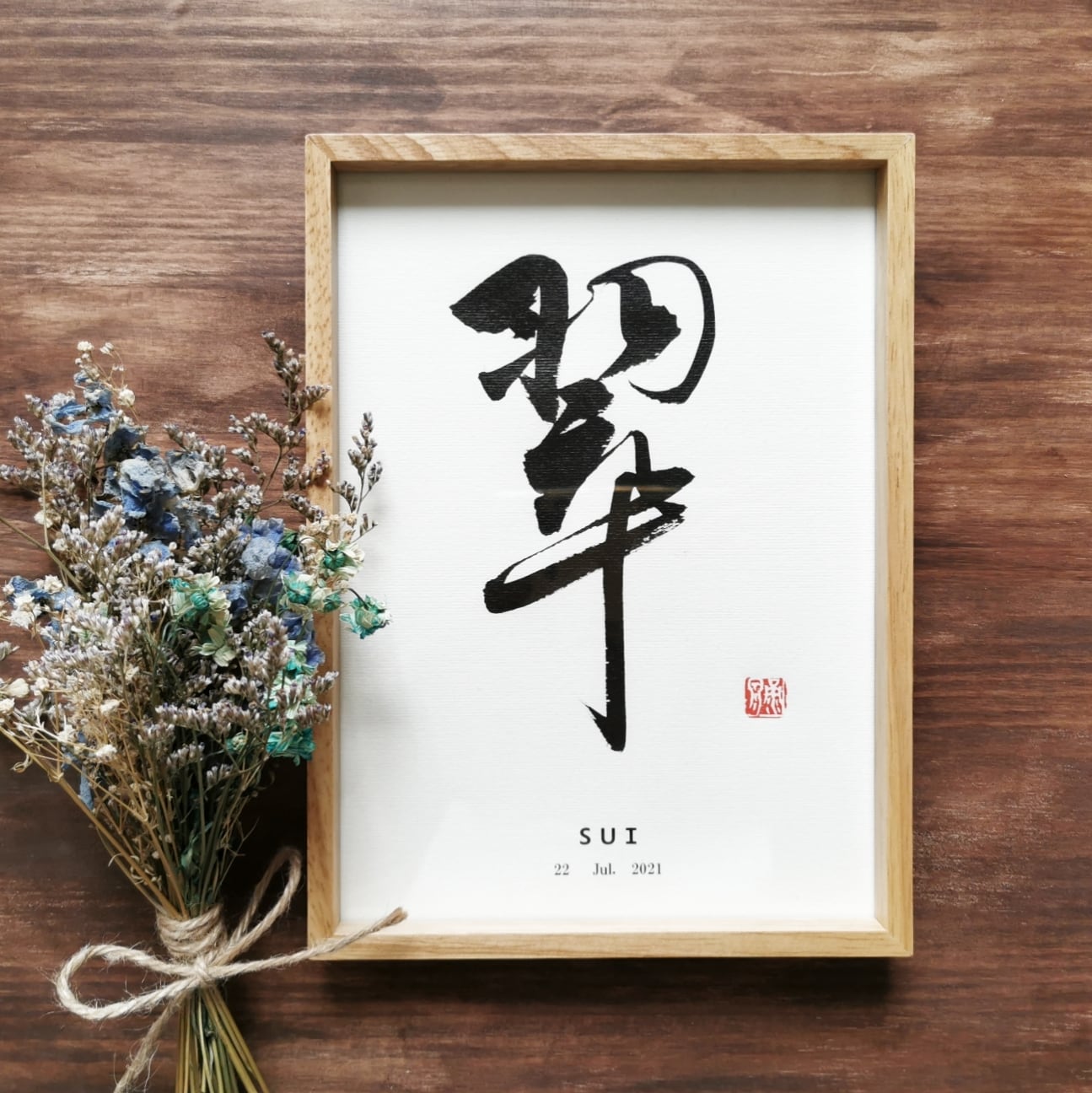 A5上質紙にお名前を揮毫し、木製フレームに仕立てます。