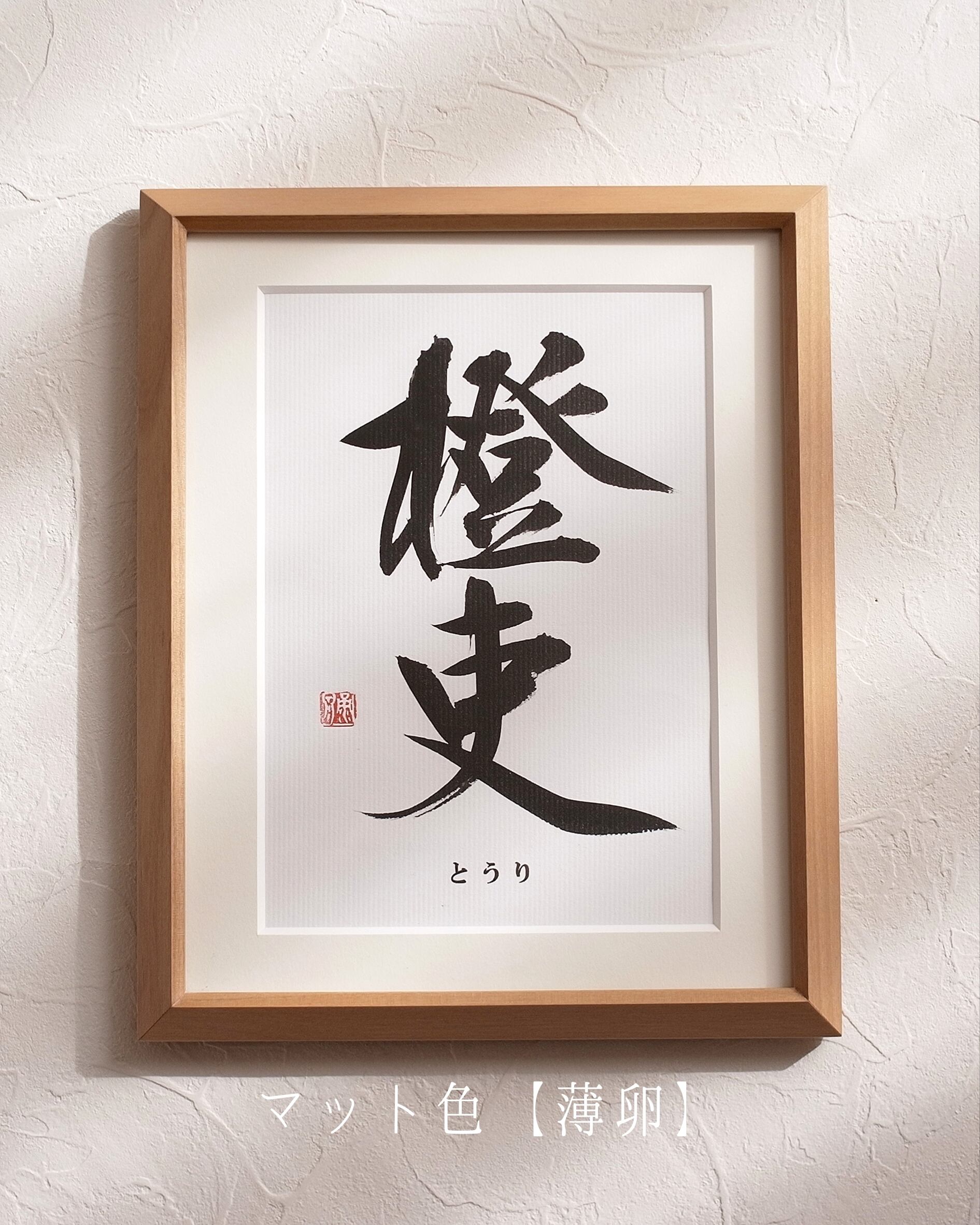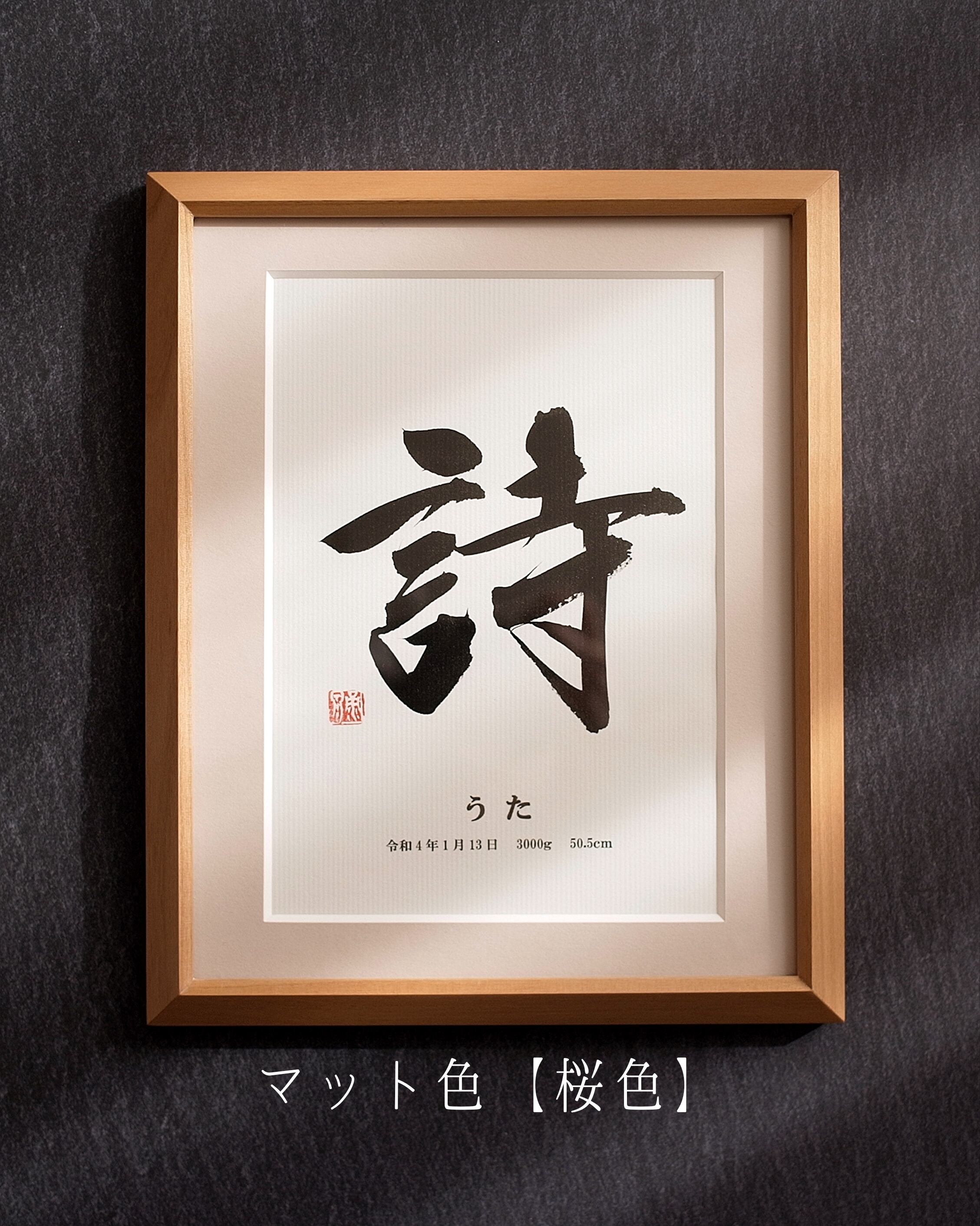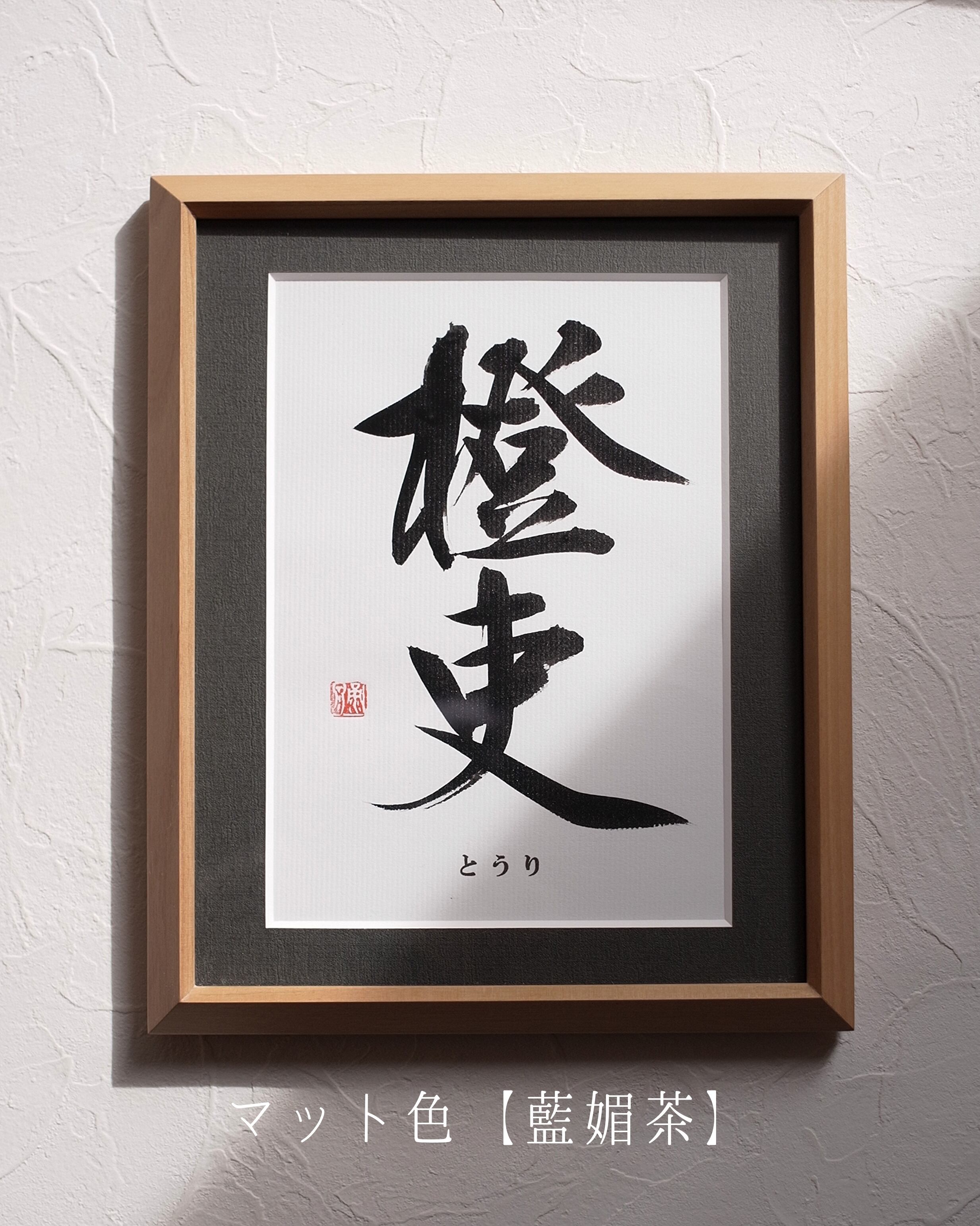 A5用紙にお名前を揮毫し、木製フレームに仕立てます。